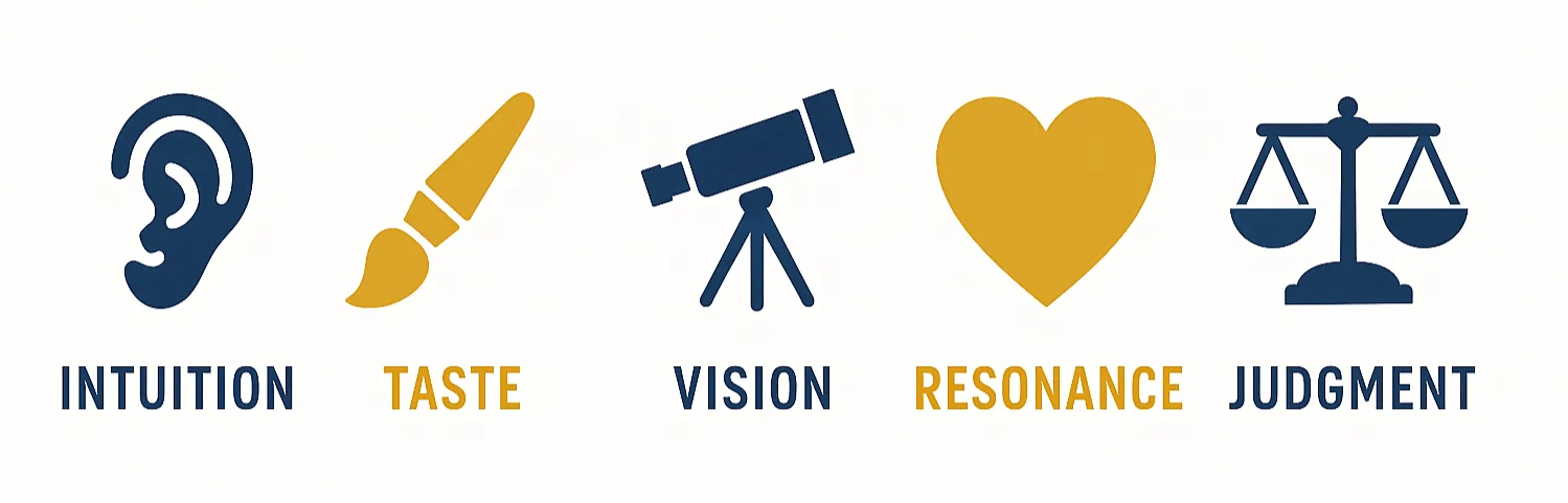 Taste. Intuition. Vision. Resonance. Judgment. These elements comprise your unfair edge.